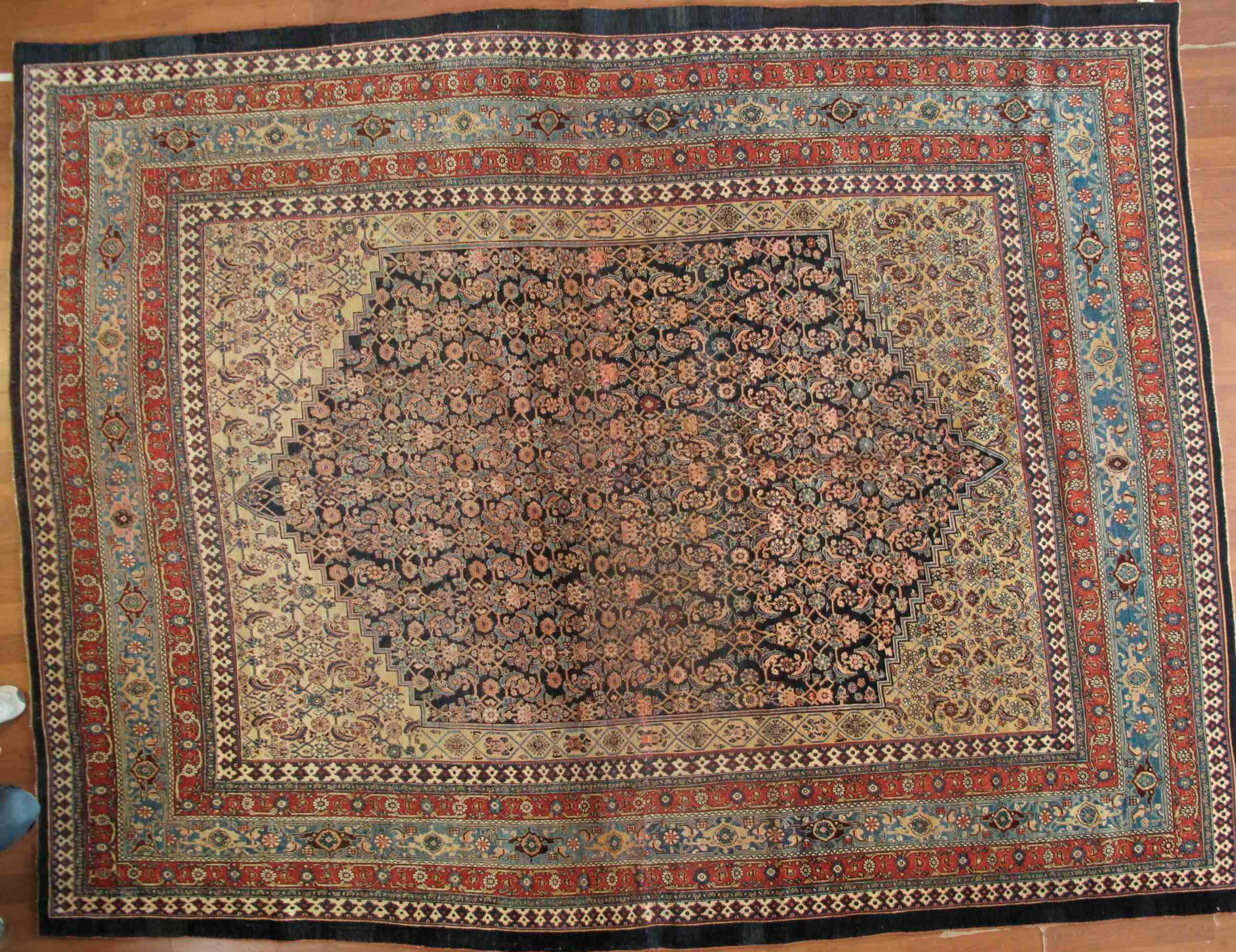Antique Persian Bijar Beige Black Red 9-6×12-6 | Manoukian Rugs™