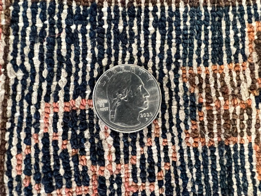 This hand knotted Persian Malayer rug lends a traditional feel to your favorite room. It carries geometric design elements along with a pleasing balance of blue and pink colors.